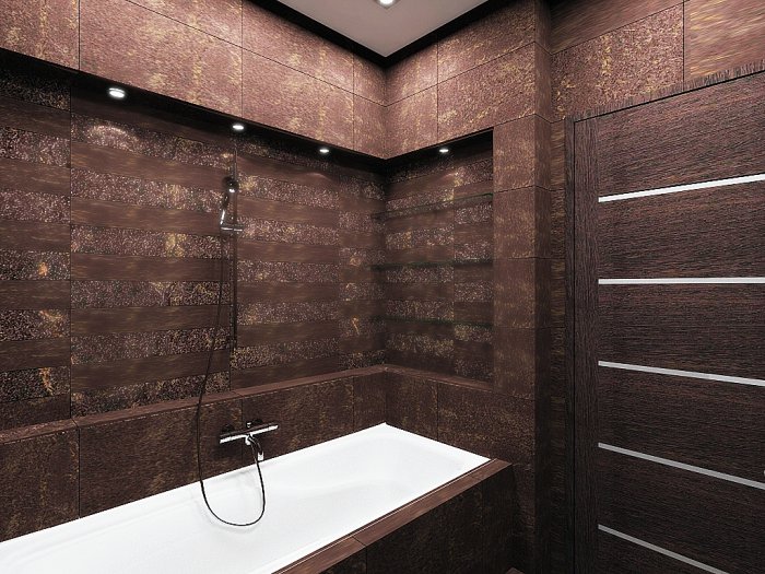 Данные конструкции могут иметь, как самые простые и традиционные, так и более замысловатые и эксцентричные формы, обеспечивающие дизайну помещения по-настоящему потрясающий облик. Такие углубления можно обустроить зеркалами, оригинальными бра, декорировать с помощью кафельной плитки, мозаики, керамогранита или других материалов с высоким уровнем влагостойкости.