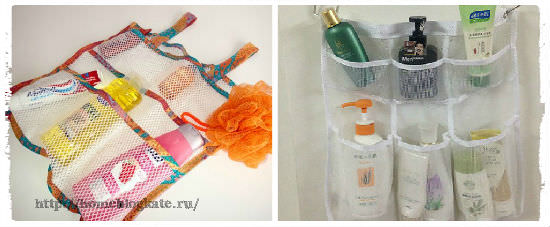 2. Если места для хранения в ванной очень мало, то многофункциональный органайзер отлично подойдет для очень маленьких комнат, где, буквально, дорог каждый сантиметр. Он вмещает в себя все средства личной гигиены. А сшит, как правило, из сетчатого материала, который не боится влаги.