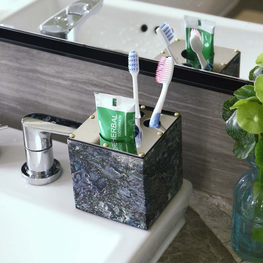 В другом варианте выдвижного ящика производитель мебели Robin Hiken Interiors предусмотрел цилиндрические емкости, которые могут быть разного диаметра и подойдут для аккуратного размещения различных длинномерных предметов (стайлеров, щёток, фенов и т.п.).