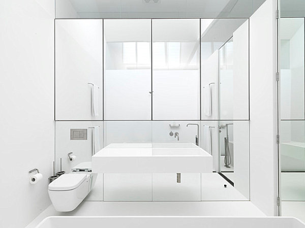 Очень эффектным и грамотным решением организации систем хранения в небольших ванных следует назвать использование зеркальных фасадов. И хотя дизайнеры утверждают, что подобные панели уже не модные, разве не восхищает вас комната, оформленная Ian Moore Architects?