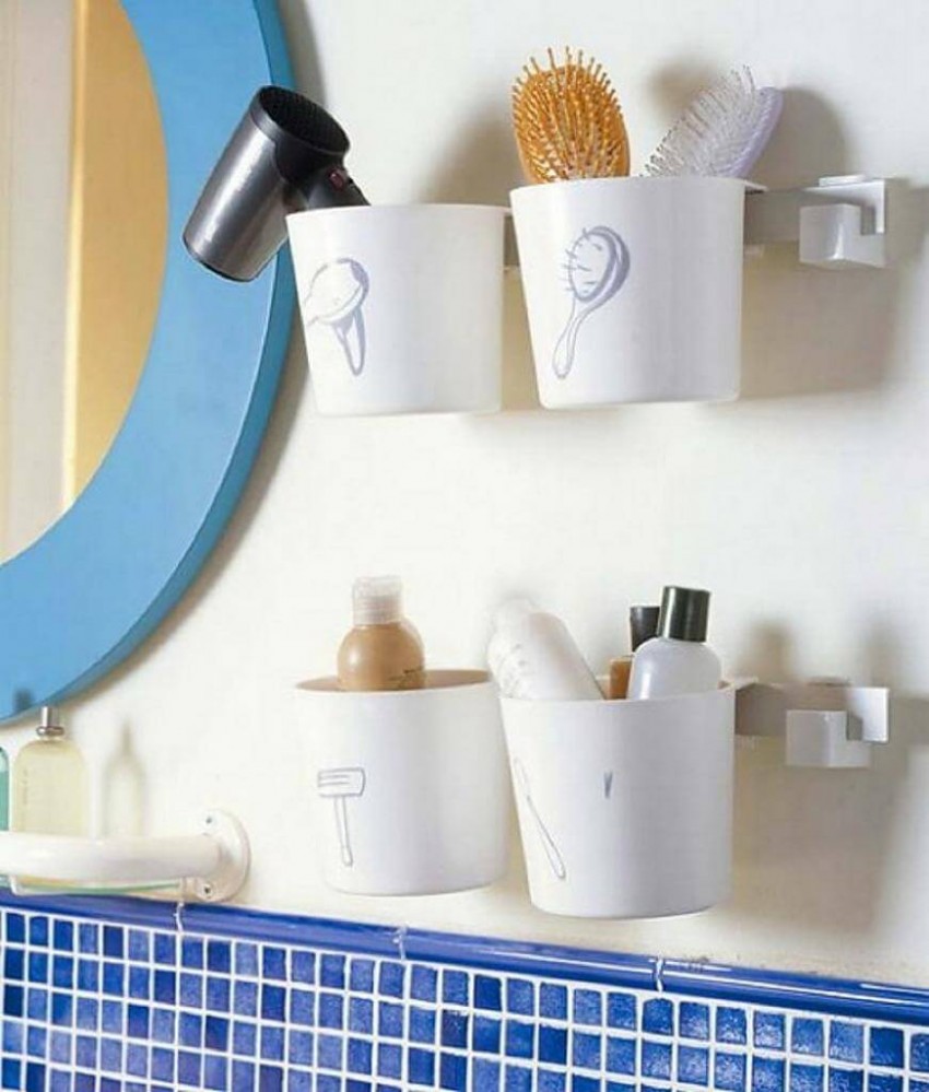 Большинство из нас хранят такие предметы гигиены, как ватные палочки, диски, резинки для волос в ванной комнате. Очень удобно складывать их в стеклянные баночки, которые можно декорировать по своему вкусу. Украсить, например, лентами, нитками, декоративными цветами, блестками. Вместо стекла хорошо смотрится пластиковые горшочки. Благодаря широкой цветовой гамме, они впишутся в любой интерьер.