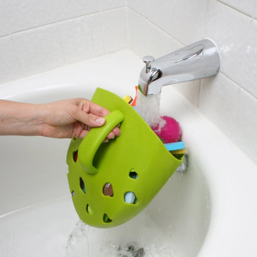 Чаще всего используют контейнеры из пластика, который можно установить поверх ванны, чтобы ребенку было удобно пользоваться игрушками во время купания и хранить их до следующей процедуры, при этом вода с них будет свободно стекать в ванну, после чего можно переместить их в другое хранилище.