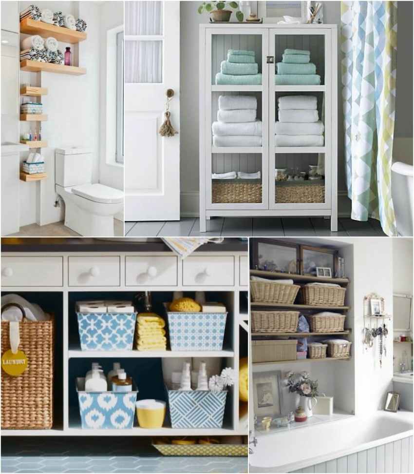 Самыми распространёнными и удобными, конечно же, являются встроенные системы хранения. Даже предлагаемые современными производителями тумбы под раковины уже имеют их.