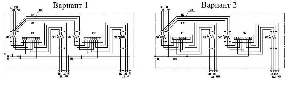 К распределительному щиту необходимо завести 5 – жильный кабель L1, L2, L3, N, и PE. Также вы можете завести 4-х жильный кабель L1, L2, L3 и N. Этот кабель можно использовать если у вас есть схема TN-C-S. Для подключения трехфазного домашнего оборудования следует использовать следующую схему: