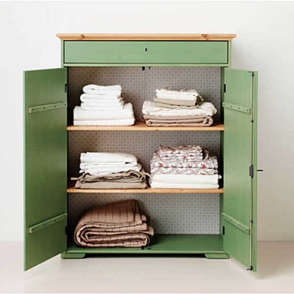 Главной особенностью данного модуля хранения считается гигиеничность: постельные принадлежности находятся вдали от обуви, уличной одежды. Здесь простыни, пододеяльники, одеяла и пледы расположены аккуратно по стопкам. Легко найти нужную вещь. Распространенный вариант для установки шкафа – спальня или ванная комната. Это удобно тем, что в любой момент можно сменить белье на кровати. После душа – взять полотенце и найти запасной халат.