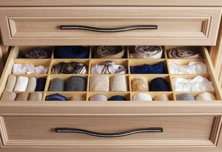 Содержимое бельевого шкафа не должно вываливаться при открытии дверей или являть собой стопку, битком забитую до верха полки. Рекомендуется придерживаться простых правил: