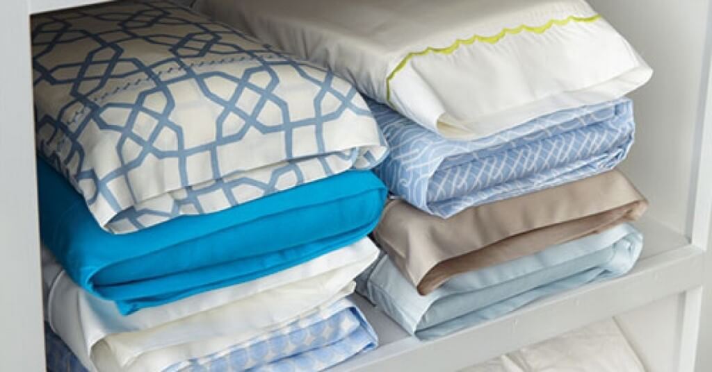 - Рекомендуется оставить ниже самые используемые наборы постельного белья. Двух-трех комплектов будет достаточно для регулярного пользования. Остальные можно положить высокой стопкой в самом верху пенала;