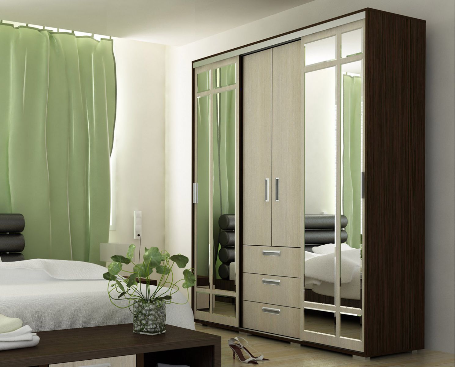 С помощью шкафа-купе вы визуально разделите разные зоны в комнате, например, рабочую от зоны отдыха.