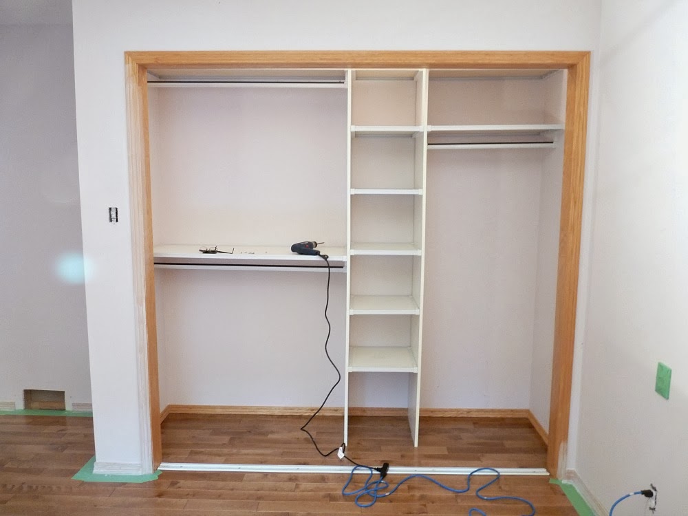 Самая сложная часть работы закончена. Ставим шкаф на свое место, еще раз проверяем положение шкафа по уровню и приступаем к установке полок, вешалок и выдвижных ящиков.