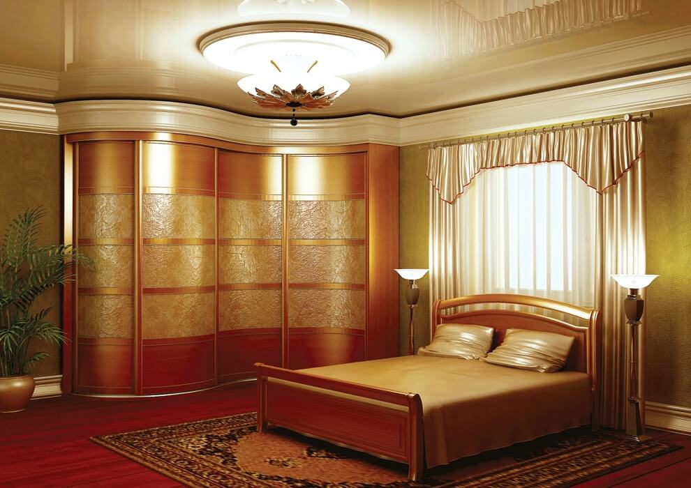 Радиусный шкаф (диагонально-угловой) – более эффектный внешне, имеет выпуклую поверхность фасада. Его стоимость дороже из-за сложности конструкции. Часто это оригинальные дизайнерские решения.