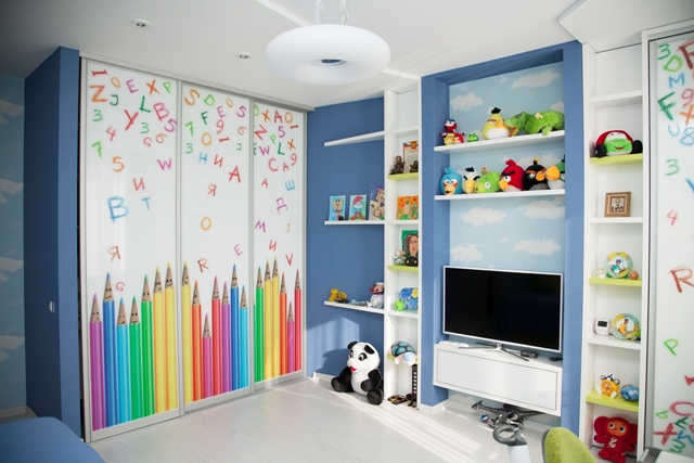Яркие цвета шкафа-купе в детской спальне вызовут восторг юных владельцев и сделают предмет мебели привлекательным для них. Таким ненавязчивым способом можно приучить ребятишек к порядку.
