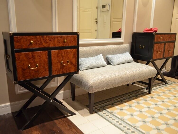 Хорошим вариантом для прихожей будет мягкая скамья с ящиками. Вариантов изготовления великое множество, удобную лавочку можно сделать своими руками. Весьма эксклюзивно выглядит сундук, переделанный в скамью.