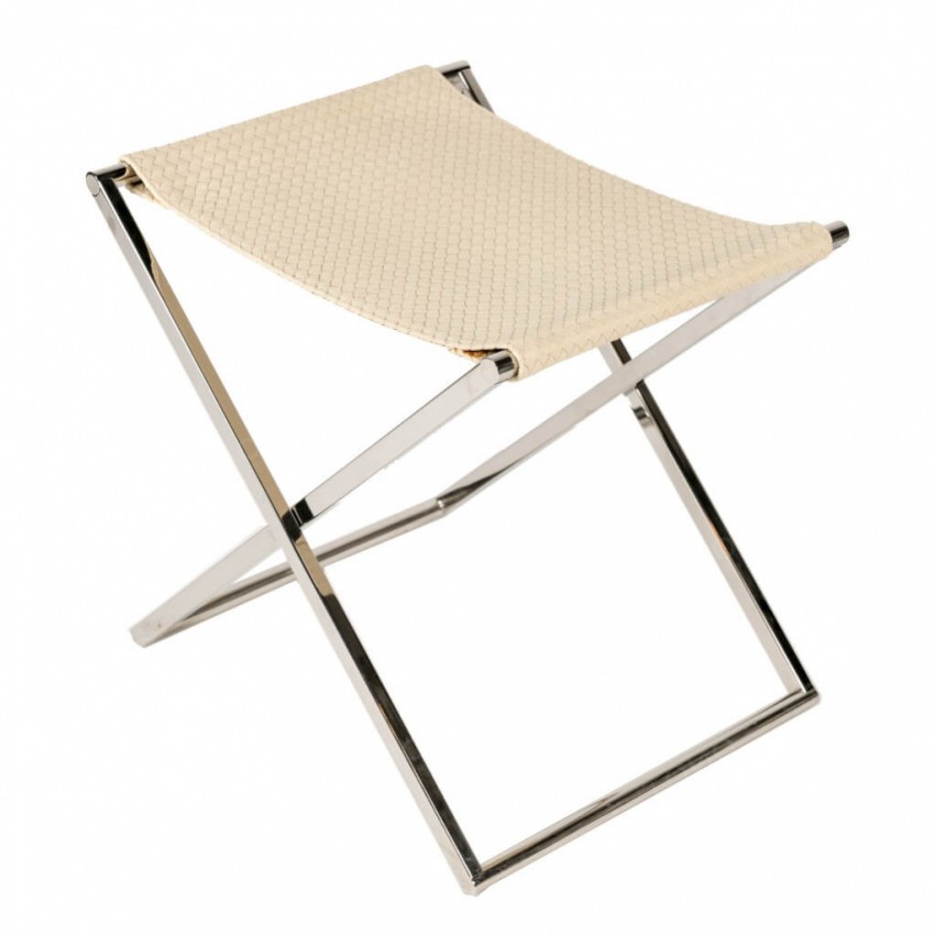 Наиболее просто своими руками изготовить складной «рыбацкий» стульчик в виде табурета. Он представляет собой две замкнутые квадратные или прямоугольные рамки из алюминиевой трубки, соединенные между собой шарнирно. Между рамками натягивается брезент или друга прочная ткань. При этом брезентовую ткань лучше сшить кольцом, получив при этом двухслойное сиденье. При этом использование для сиденья дерева или пластика обычно не рационально. Комфортности оно не прибавляет, но увеличивает вес и габариты табурета в сложенном положении, и усложняет процесс складывания-раскладывания.