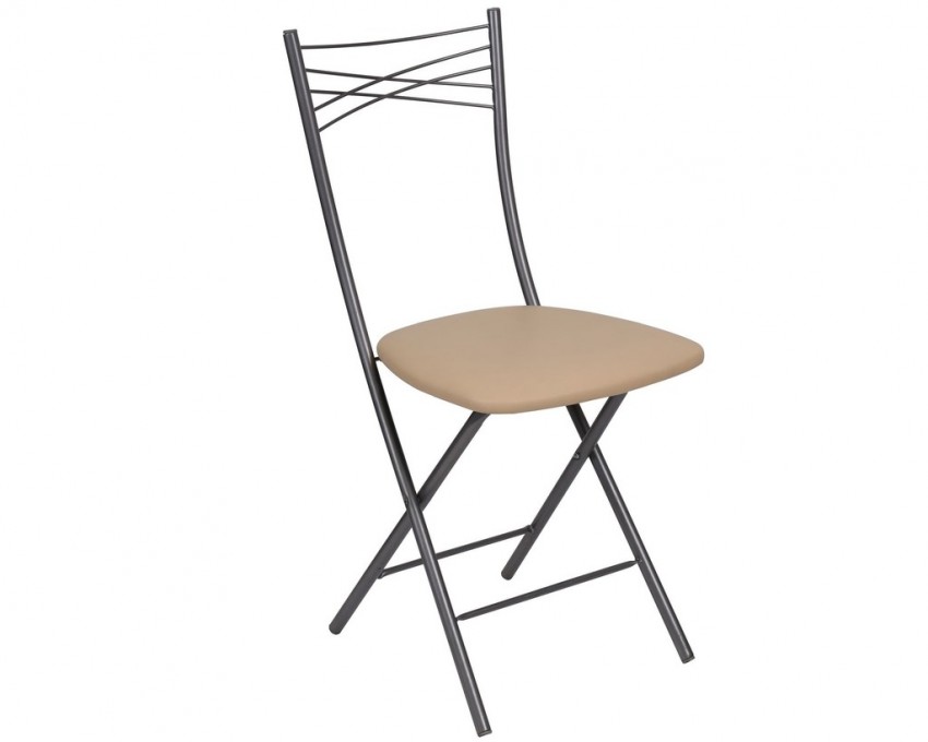 - Стул с матерчатым сиденьем. Он легко складывается пополам. В собранном виде комплект из четырех изделий занимает такую же площадь, как стационарная модель стандартных размеров.