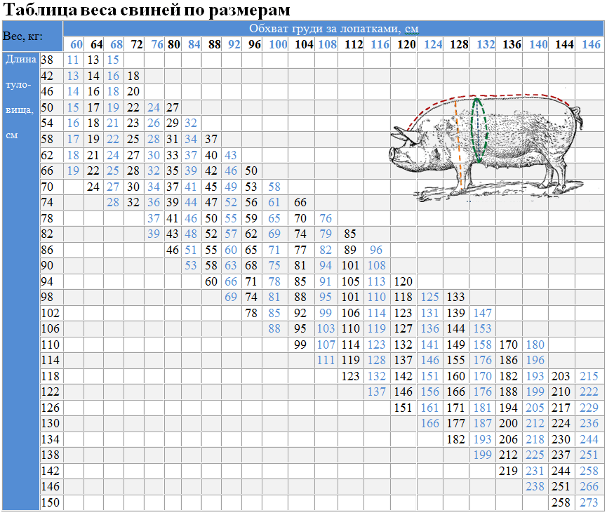 В следующей таблице можно ознакомиться с данными массы по породам у свиней: