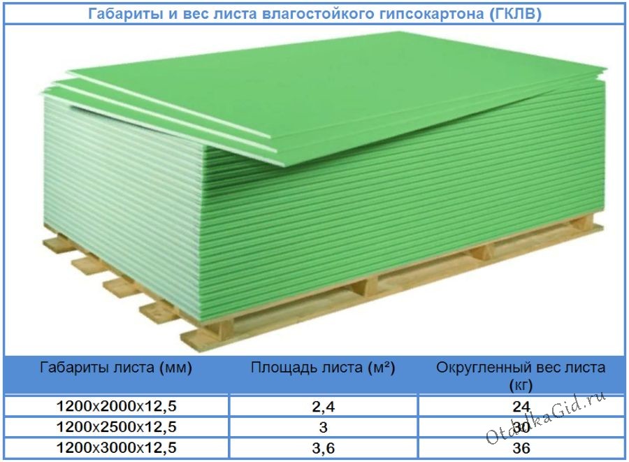 В зависимости от размера, параметры листов ГВЛВ могут быть следующими: