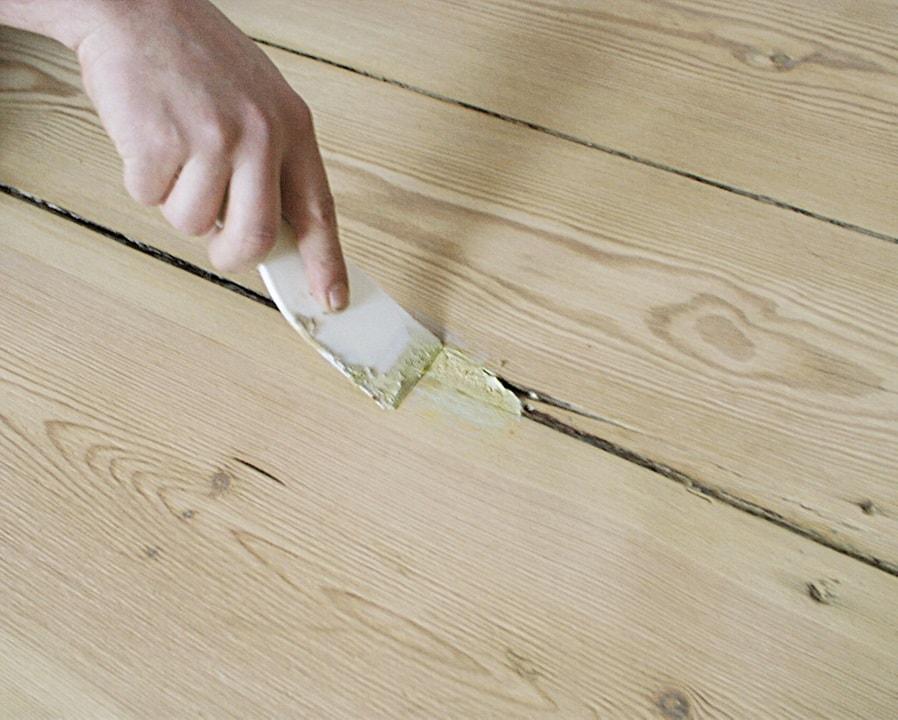 Один из вариантов – шпаклевка щелей специальными составами по дереву с добавлением древесной муки. Самодельную смесь можно сделать из ПВА и мелкой древесной стружки необходимого оттенка.