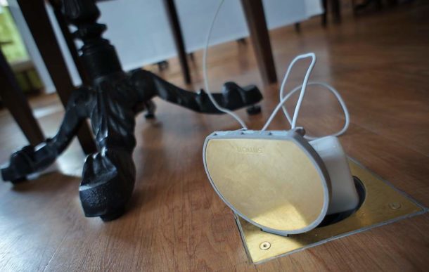Если монтаж не был выполнен заблаговременно, стоит использовать розетку в плинтусе, которая устанавливаться в различных частях помещения (на одну комнату можно смонтировать до трех точек).
