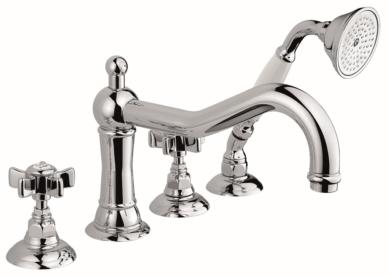Для установки турецкого варианта смесителя для ванны на ее борт потребуется просверлить 5 отдельных отверстий. Кроме лейки душа, в комплект крана из латуни ничего больше не входит. Зато цена от 18 500 рублей. Но стильное исполнение, 5 лет гарантии и надежность конструкции объясняют популярность модели.