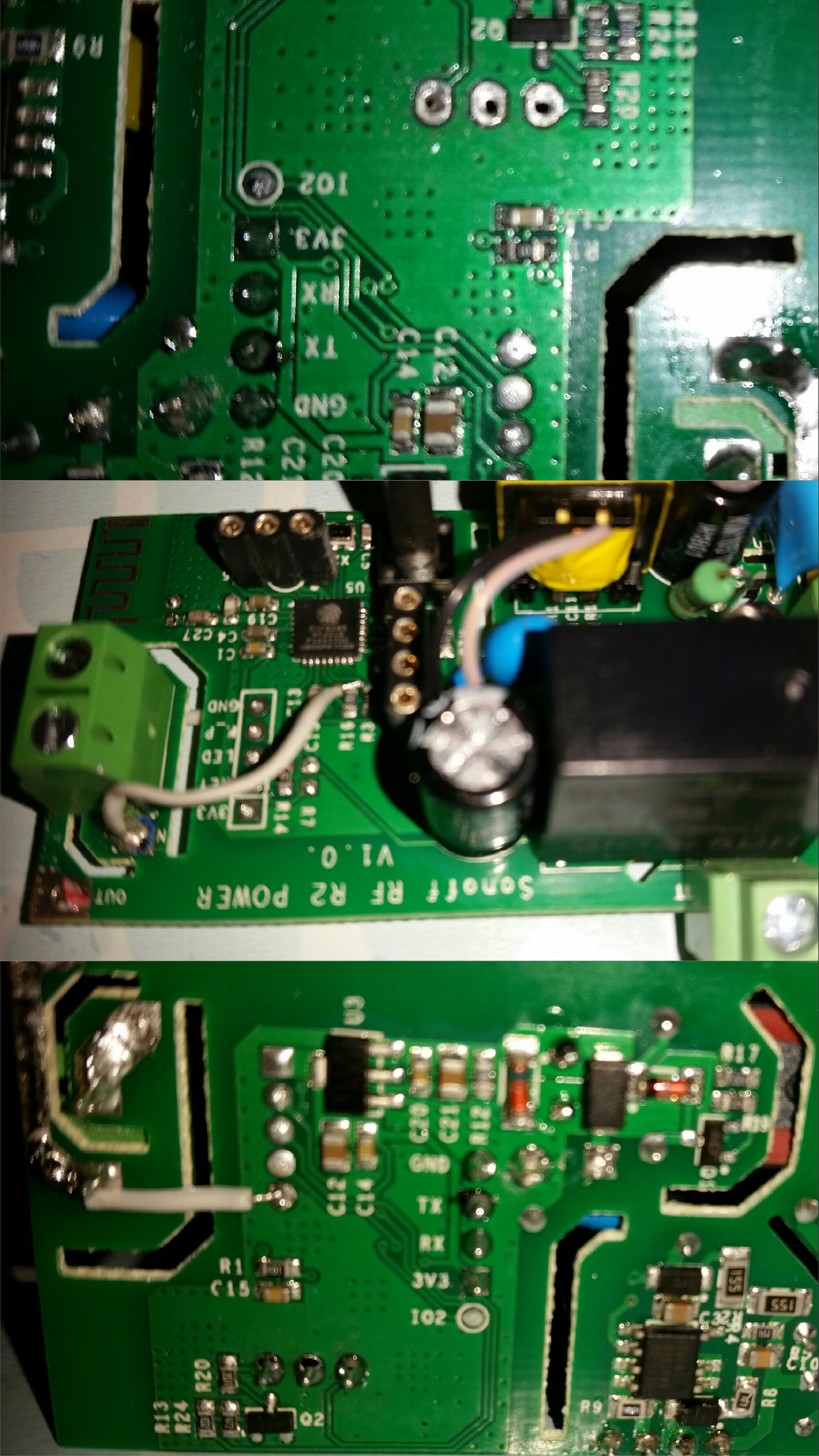 The Sonoff Basic R3 uses the ESP8285 chip. With this version, the mains power reverts to solder rails directly on the PCB. It also moves the Wi-Fi module to a separate PCB mounted on the main PCB. It makes access to the underside of the serial interface contacts quite difficult.