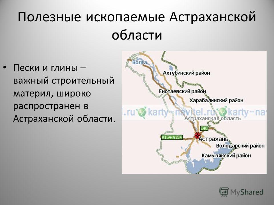 Полезные ископаемые Астраханской области Пески и глины – важный строительный материл, широко распространен в Астраханской области.