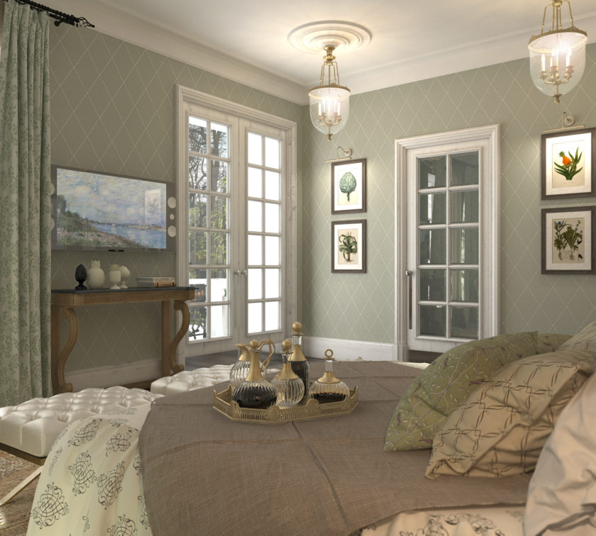 Она, как правило, из массива, из натурального дерева. С мебелью можно экспериментировать, в зависимости от того, какое впечатление вы хотите получить от интерьера. Если хотите роскоши и «помпезности» — выбирайте мебель с высокими спинками, изогнутыми, резными линиями (ножками, изголовьем). Если хотите современности – выбирайте простые линии.