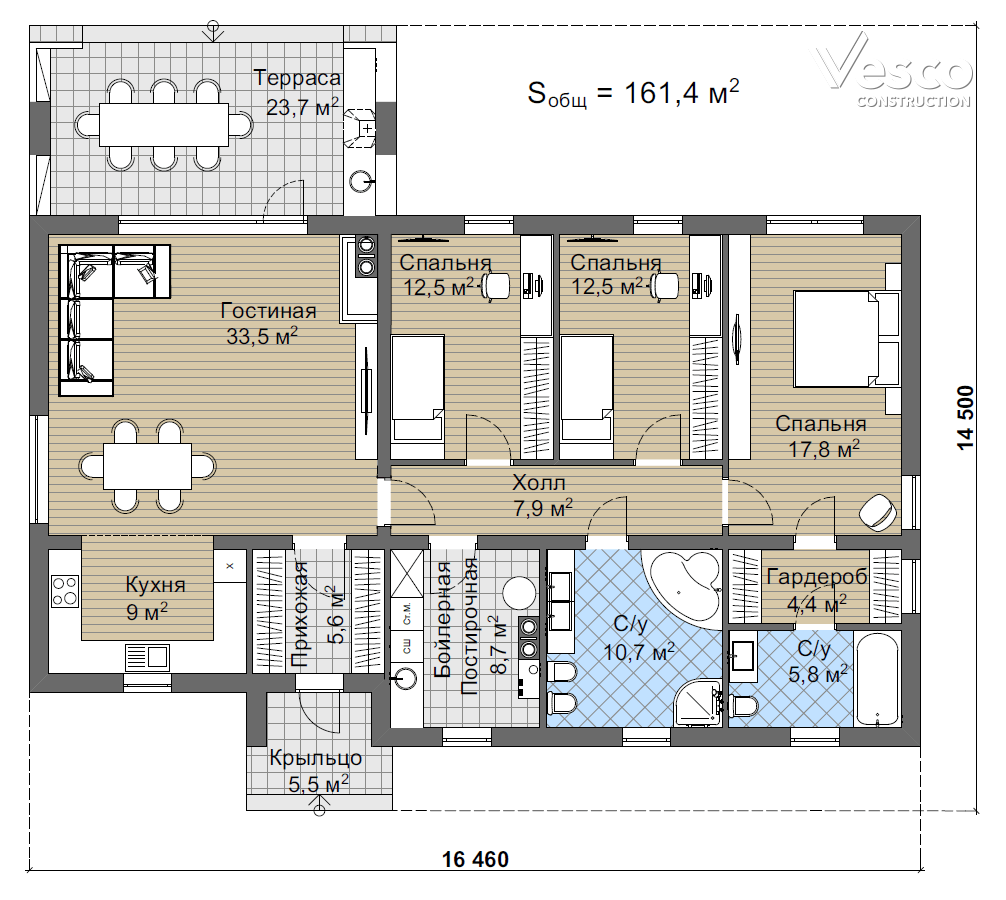 Проект одноэтажного дома Вельц (161,4 кв.м)