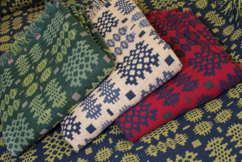 Если обратить внимание на фото гобеленового покрывала, то можно заметить, что узор состоит из нитей разного цвета. Сначала создается основа гобелена с помощью плотного перекручивания нитей основного цвета, затем поверх неё начинается выплетаться узор, который органично ложится на основной цвет.
