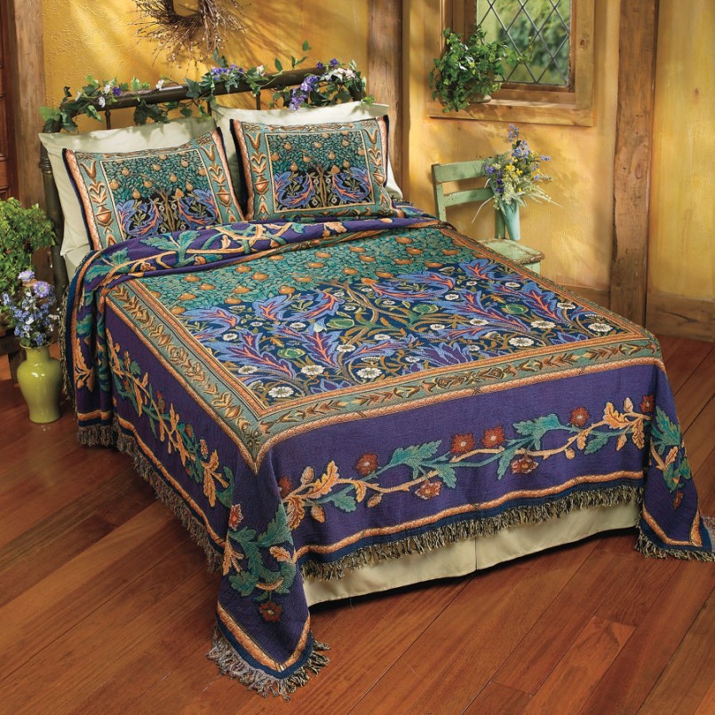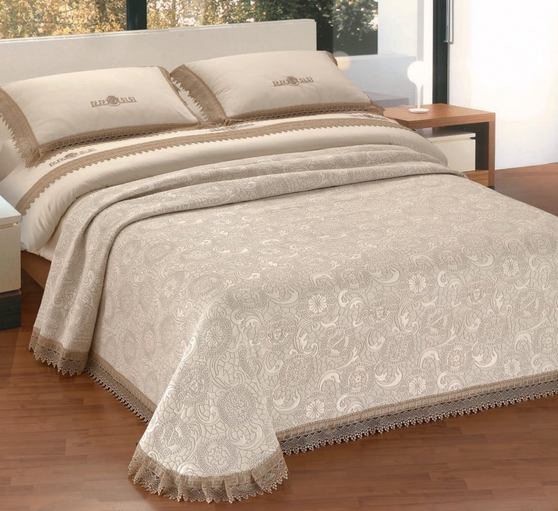 Красочные гобелены с изящным и неповторимым рисунком станут прекрасным дополнением к любому интерьеру. К тому же, такое приобретение будет выполнять роль не только простого украшения, но и защищать постельное белье от грязи и пыли. Аристократичность этой ткани прекрасно вписывается в пространство спальной комнаты и создает особую атмосферу домашнего уюта.