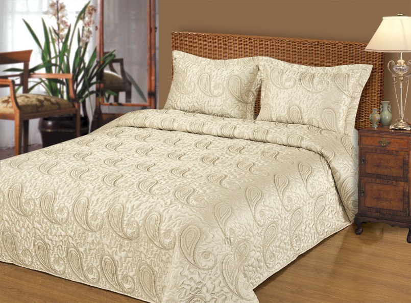 Яркое и пестрое покрывало будет перетягивать внимание на себя и зрительно делать комнату намного меньше, поэтому владельцам небольших спален лучше остановить свой выбор на теплых тонах пастельного оттенка.