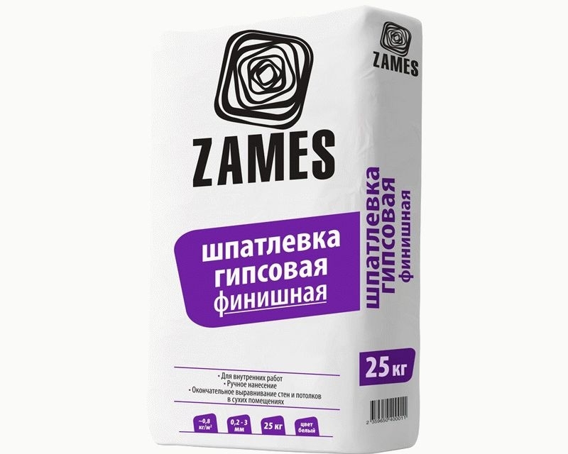 ZAMES. В ее основе лежит гипс. Удобен в применении для внутренних поверхностей. Продаётся в виде сухой смеси.