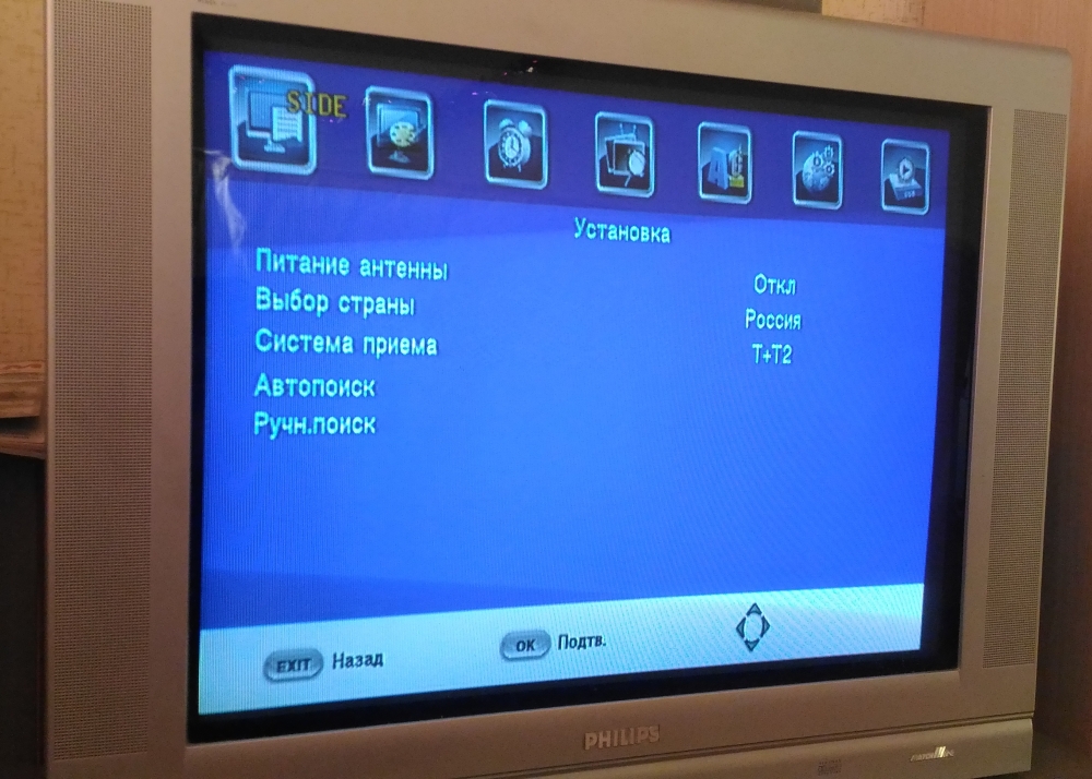 Когда вы нашли максимально возможный уровень сигнала и антенна установлена в нужном направлении, нужно произвести поиск каналов на приставке.