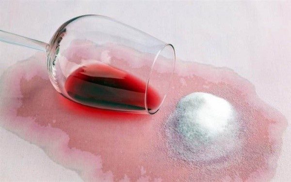 В чистом виде соль хорошо помогает удалить красное вино с тканных поверхностей