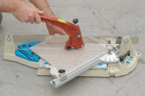 - ручной плиткорез, чаще всего используемый при небольших объёмах работ;