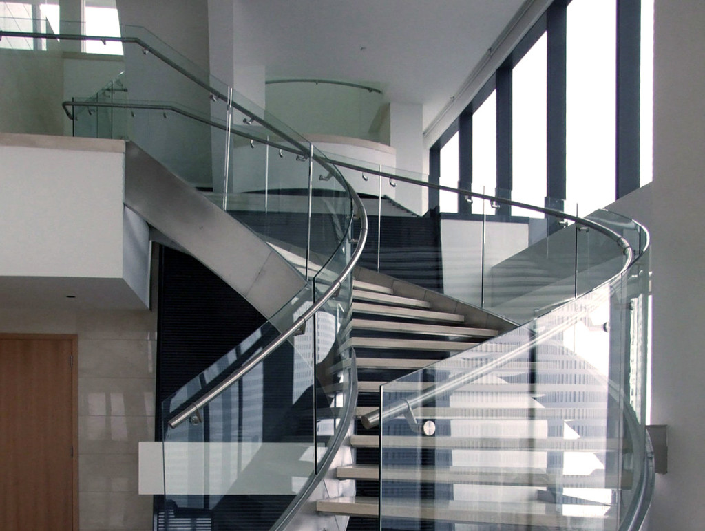 Стеклянные ограждения лестниц должны иметь определенные свойства, удовлетворяющие строительным нормам. В первую очередь от них требуется безопасность и надежность. Триплекс даже при сильном ударе не разлетается на осколки, способные поранить людей, при повреждении он просто покрывается сетью трещин и осыпается. Материал при нагревании изгибается, что позволяет изготавливать объемные цельностеклянные ограждения различной формы.
