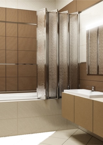 Узкие стеклянные полотна складных штор длиной 20-40 см изготавливают преимущественно на заказ. Именно поэтому «гармошки» смотрятся единым целым с ванной и органично вписываются в любой интерьер. Листы толщиной 6-8 мм обеспечивают прочность стеклянной поверхности, но утяжеляют всю конструкцию. Поэтому необходимо заботиться о надежности креплений и своевременно заменять износившиеся детали.