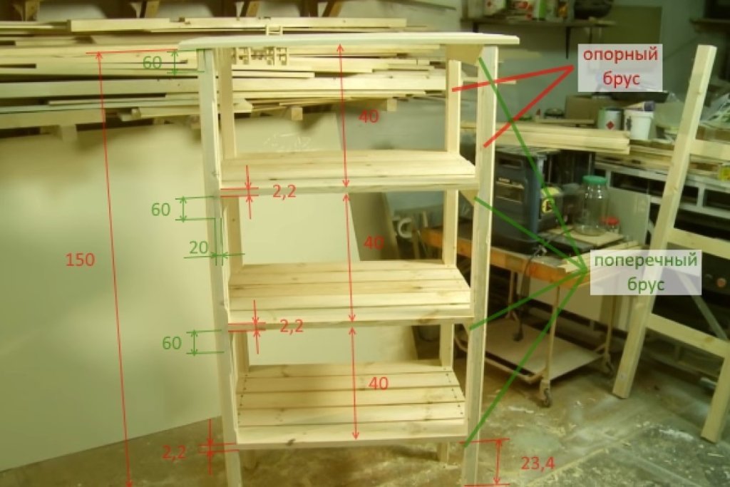Опираясь на представленную схему, отец семейства непременно сможет сделать полочки для цветов и выращивания молодых растений.