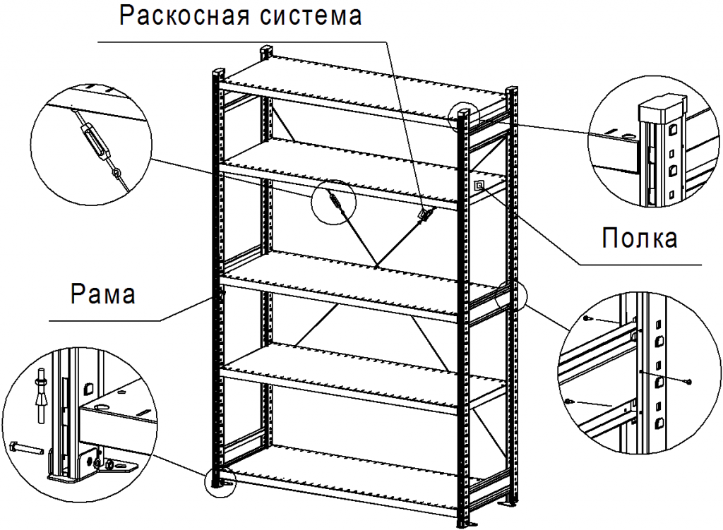 Чтобы собрать из деталей стеллаж, нужно выполнить следующие действия: