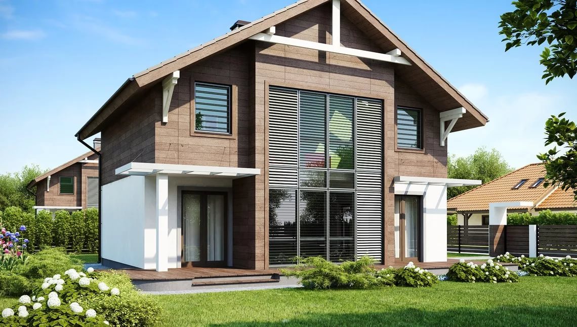 Самый популярный из-за своей простоты и лаконичности. Такие одно- или двухэтажные дома хорошо смотрятся с соседними постройками, но и не теряют свой индивидуальный шарм.