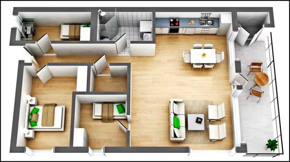 Такая планировка хоть и используется чаще всего, но является все же чисто условной.