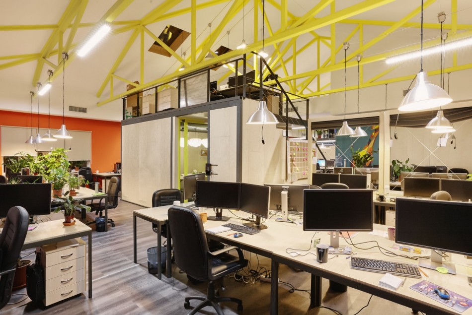 Здесь также органично впишутся мобильные перегородки, разделение на множество небольших кабинетов. Для офисов Open space отлично подходит.