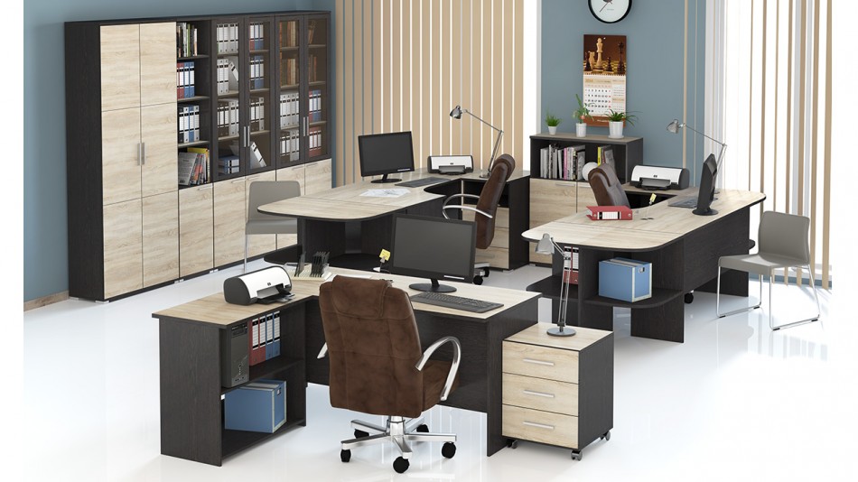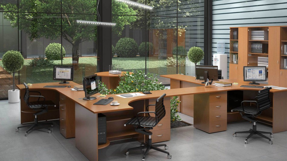 При отсутствии достаточного количества места, работникам будет не комфортно, что поспособствует снижению производительности. Желательно использовать угловые варианты мебели или применять элементы для зонирования.