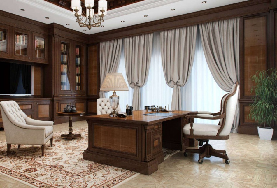 Для создания нужной атмосферы в этих престижных стилях необходимы дорогостоящие материалы и соответствующая роскошная меблировка. Поэтому ремонт и полное перевоплощение обычной комнаты в потрясающий офис – удовольствие не из дешевых.