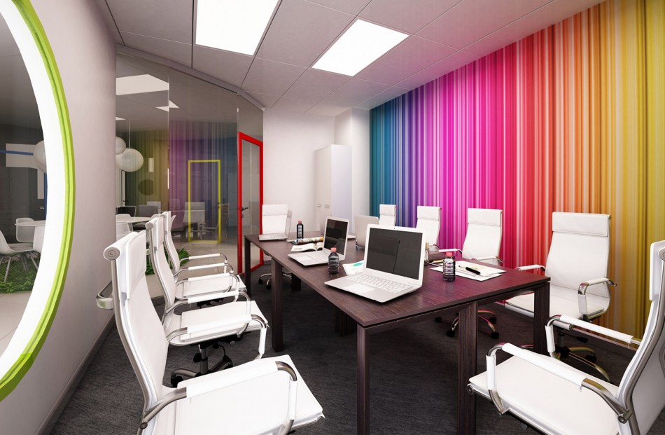 Не используйте сложные формы в дизайне интерьера и мебели, также следует ограничить количество ярких красок. Если существуют корпоративные цвета, целесообразно использовать их в цветовой гамме. При этом основные цвета рекомендуется выбирать светлых, пастельных тонов.