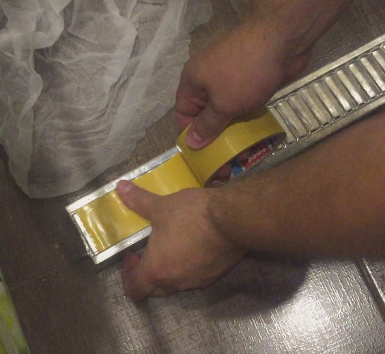 Приклеиваем к профилю полоски двух стороннего скотча Tesa. Кусочки примерно по 10 см. Между скотчем оставляем расстояния примерно по 40 см.