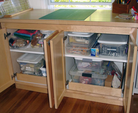 Большое преимущество, когда в швейном столе предусмотрено место для фурнитуры, ткани, ниток. Естественно, с таким приспособлением придётся повозиться, но работать за подобным столом будет одно удовольствие.