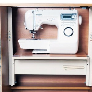 Не менее удобна для домашнего использования специализированная подставка-тумба. Большинство из них снабжено специальным отсеком, куда легко помещается на хранение швейная машинка. При этом крепление столешницы с инструментом к корпусу тумбы обычно осуществляется шарнирно, что позволяет одним движение превратить рабочее место в обычную тумбочку, где все портняжные аксессуары спрятаны от постороннего взгляда.