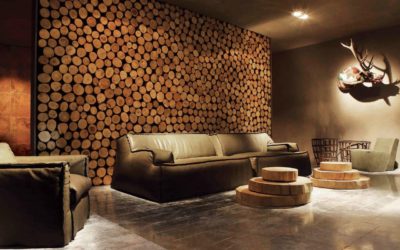 Популярный дизайнерский прием. Представляет собой наружную обшивку стен или дома. Хорошая альтернатива плитке или обоям. |