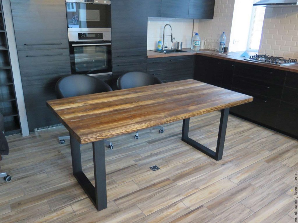 Лофт предполагает использование естественных материалов. Они могут применяться по отдельности либо продуманно комбинироваться. Если к сочетанию материалов подойти грамотно, тогда получится не только качественный, но и эстетичный предмет. Зачастую обеденные столы производятся из таких материалов: