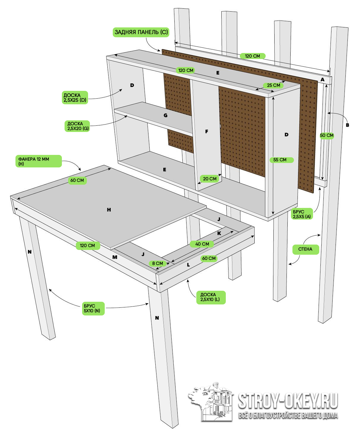 | Столешница | Фанера или ДСП | 50х120х1,2 |